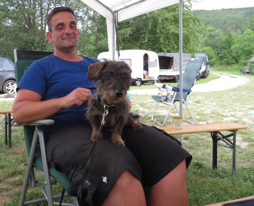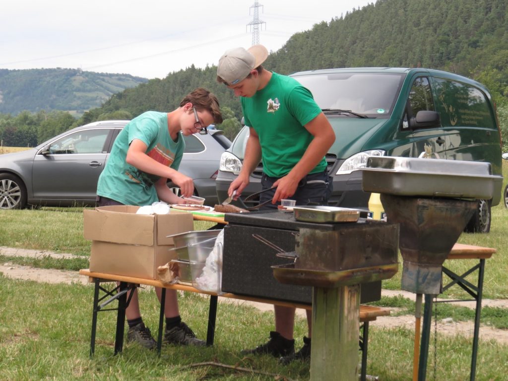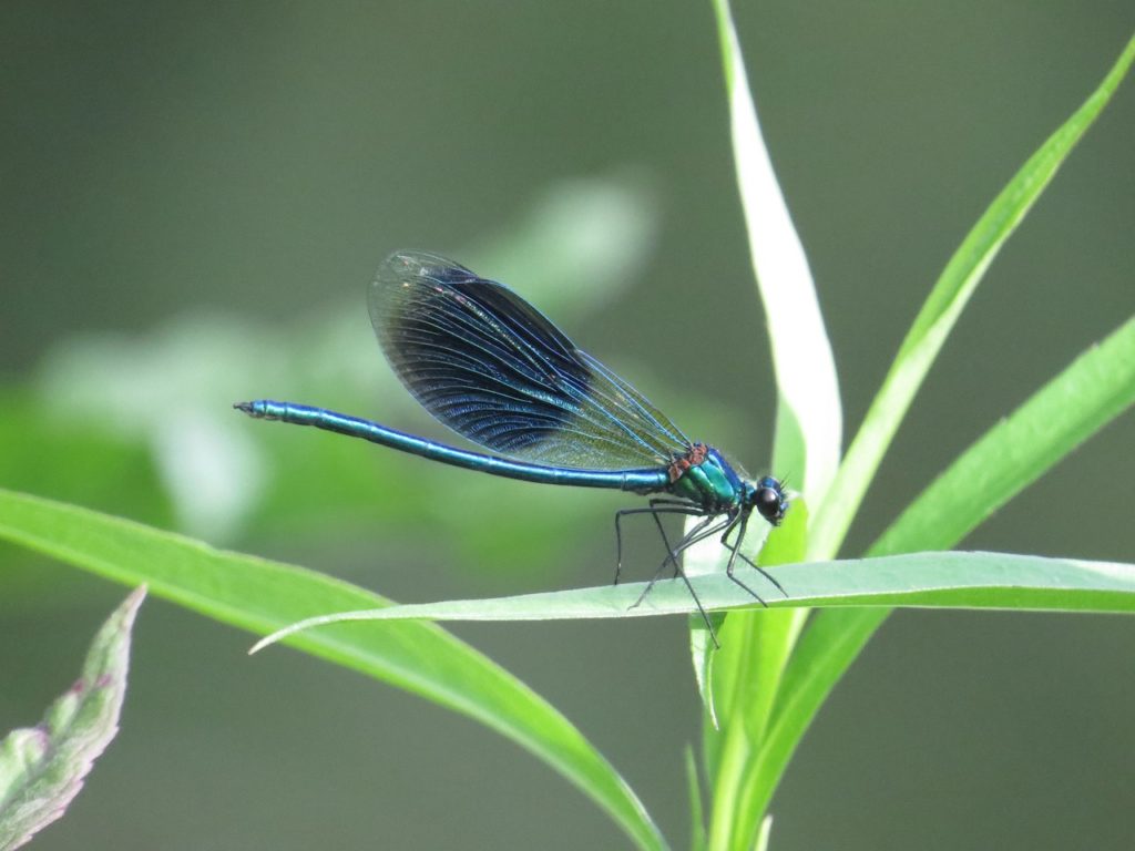 Jugendnachtangel am 4.07.2020. Die Teilnehmer wurden von einer gebänderten Prachtlibelle willkommen geheißen.