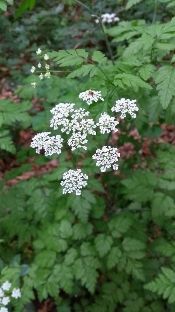 Links im Bild Hecken-Kälberkropf (Chaerophyllum temulum), auch Taumelkraut genannt.
