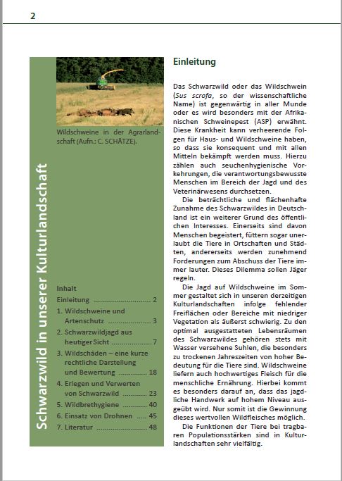 Diese Broschüre soll deutlich machen, mit welchen Grundlagen es möglich ist, die aktuell vorherrschenden Schwarzwildbestände zu reduzieren sowie ein regionales Lebensmittel zu gewinnen.